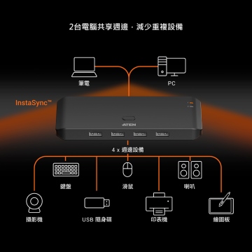 • ◆兩台電腦共享四個 USB 週邊設備