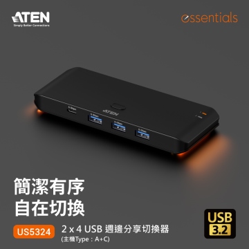 {{ INAME || 'ATEN US5324 USB+C主機共享4組USB設備5Gbps+切換鍵'}}