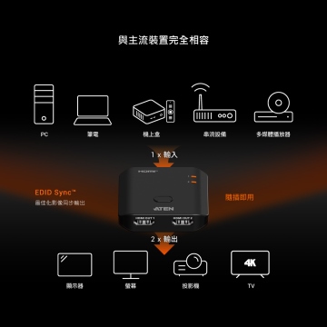• ◆單一HDMI訊源同步分享至兩個True 4K顯示器