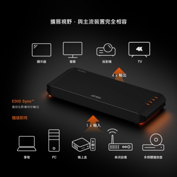 • ◆單一HDMI訊源同步分享至四個True 4K顯示器