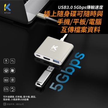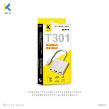 {{ INAME || '【KTnet】T301 TYPEC 3合1 4K-100W影音轉接器 影音/資料傳輸/充電 三合一'}}