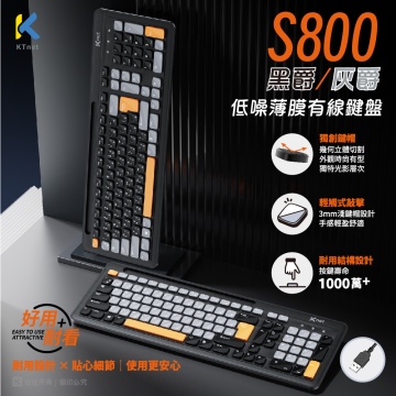 {{ INAME || '【KTnet】S800 黑爵低噪薄膜有線鍵盤 USB 薄膜式鍵盤 支援多輸入法 3mm淺鍵帽 12組快捷鍵'}} 產品代號 : {{INAME}}