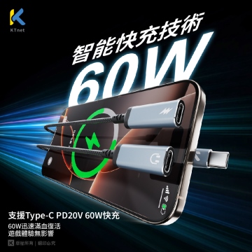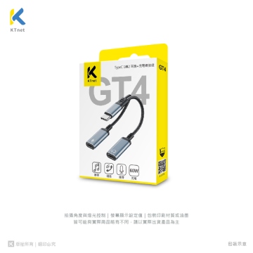 {{ INAME || '【KTnet】GT4 TypeC 1轉2耳麥+60W充電轉接線10CM'}}