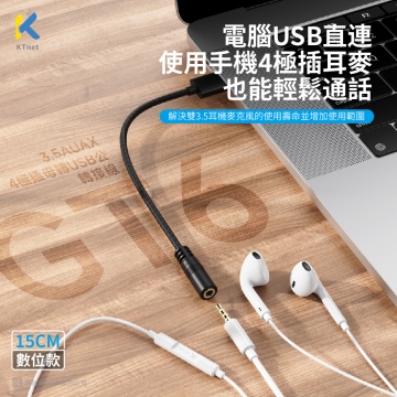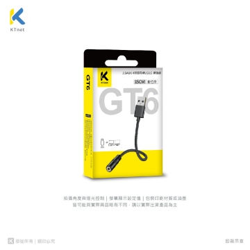 {{ INAME || '【KTnet】GT6 3.5AUX 4極母轉USB公 轉接線15CM 數位款'}}