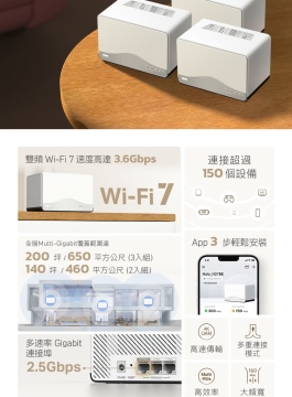 • ◆2.5G 連接埠,超越1G網速 / 訊號充滿200坪,透天厝大坪數首選,AI無縫漫遊不斷訊