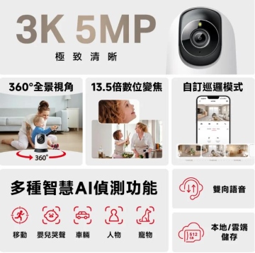 • ◆AI智慧偵測:人物、嬰兒哭聲偵測 / 移動偵測與追蹤 / 雙向語音