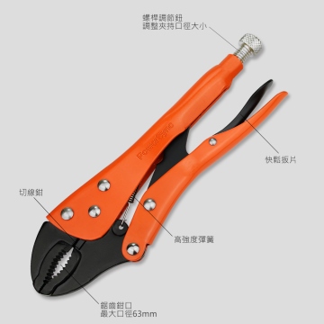• ‧ 鉗口夾持有力,最大開口63mm
