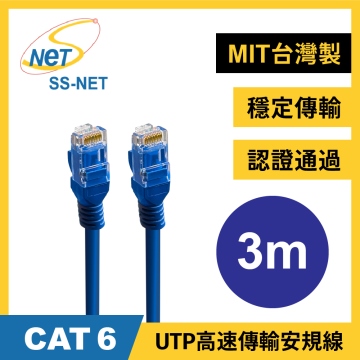 {{ INAME || '【SS-NET】CAT6 UTP 24AWG 高速傳輸安規線 3M藍色 台灣製造'}}