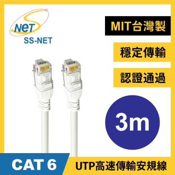 {{ INAME || '【SS-NET】CAT6 UTP 24AWG 高速傳輸安規線 3M灰白色 台灣製造'}}